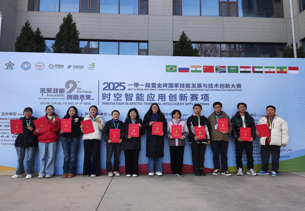 12月5日至7日,2025“一带一路”暨金砖国家技能发展与技术创新大赛时空智能应用创新赛项在河北省石家庄铁路职业技术学院成功举办。在学院多灾种支撑技术创新研究党支部的引领和悉心指导下,测绘工程系师生党员带领参赛团队在此次高水平国际赛事中取得突出成绩,两支学生参赛队分获二等奖和三等奖,韩丽老师荣获教师组三等奖,陈爱梅和罗富丽老师获评“优秀指导老师”,团队同时斩获优秀组织奖。该项赛事由金砖国家工商理事会中方理事会、...