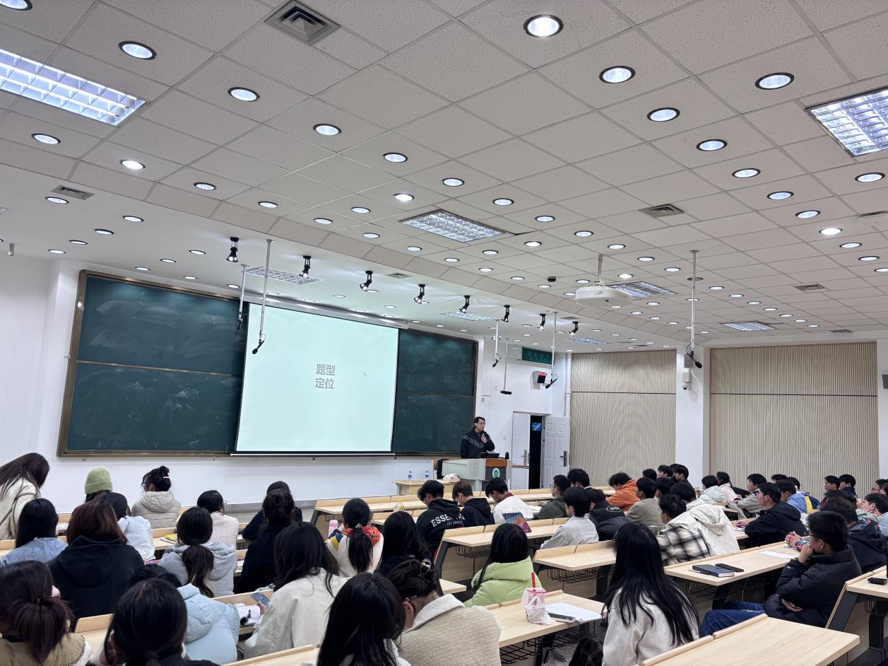 讲座聚焦四六级考试的重点与难点,内容详实、针对性强。主讲老师结合历年真题,系统讲解了阅读理解部分的解题技巧,包括信息定位、干扰项排除等方法,并围绕复习规划与时间管理提供了具体建议,帮助学生科学安排备考、增强应试能力。